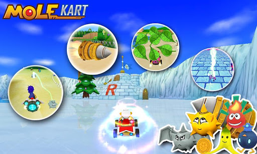 nosso Mole Kart.Várias pistas de corrida, escolhas diferentes de karts,