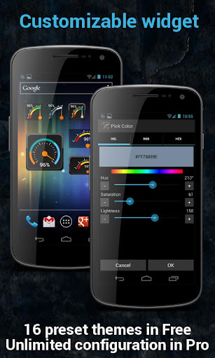 Nota: Esta é a versão Pro do Gauge Battery Widget Free. Nela estão disponíveis os seguintes